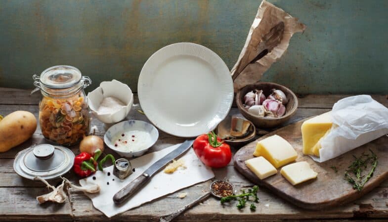 Vorausplanung ist hierbei ein essenzieller Punkt in der Küche. Damit die Lebensmittelresten richtig verwertet werden können, solltet ihr ein paar Basis-Produkte in der Studentenküche oder dem Kühlschrank vorrätig haben. Hilfreiche Zutaten wären beispielsweise Eier, Käse, Reis, Pasta, Aufback-Gebäck, Toastbrot, Sauerrahm, Senf oder auch Knoblauch. Mit diesen Zutaten könnt ihr aus den Fleischresten mit Beilagen vom Vortag, zum Beispiel Sandwiches oder überbackene Brote machen.